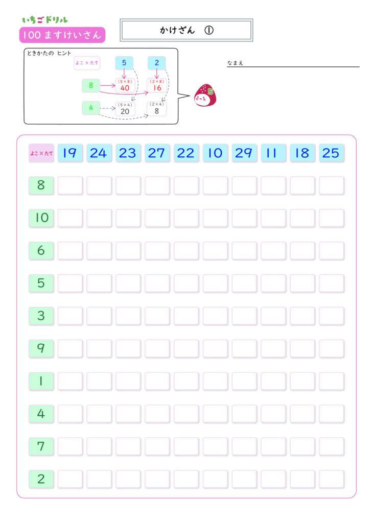 100マス計算の無料教材・プリントダウンロード