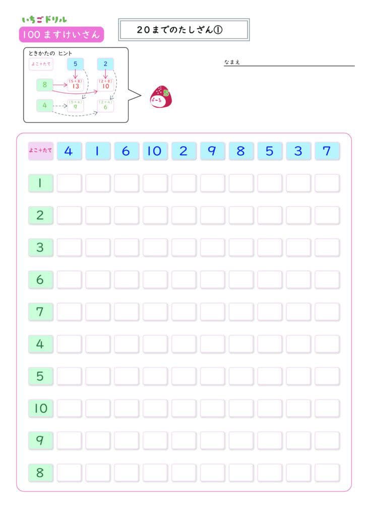100マス計算20までのたしざん