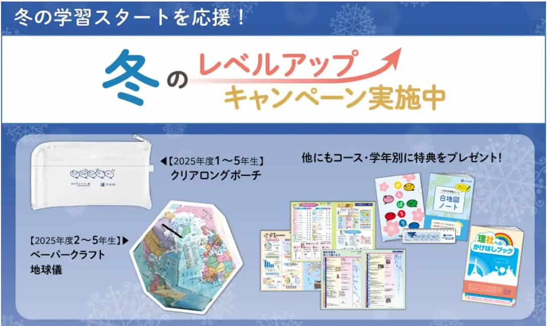 z会幼小学生コース入会で、学年別入会特典がもらえます。
