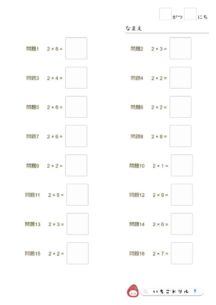 【無料】かけ算プリント100問以上(小学2年生〜の算数プリント)